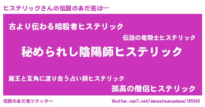 | 男性向けラノベタイトル風あだ名 | 『ヒステリックスレイヤー』 |