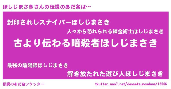 | 胡散臭い通販商品みたいなあだ名 | 『来世でも幸せになれる健康食品…その名も「ほしじまさき」』 |