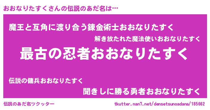 | ファンタジー風あだ名 | 『エターナルオオナリタスクー』 |