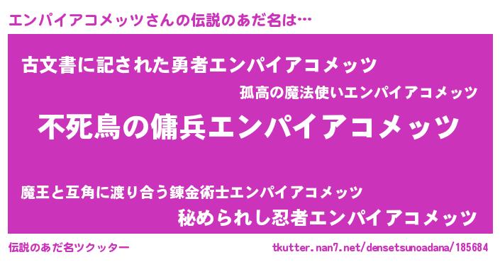 | 男性向けラノベタイトル風あだ名 | 『エンパイアコメッツの憂鬱』 |