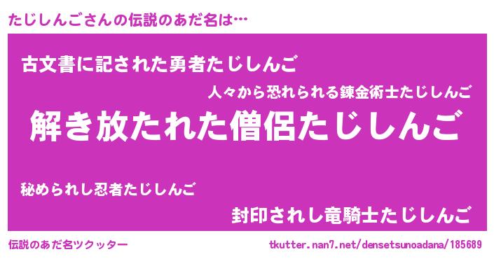 | ヘコむあだ名 | 『たじっぺ』『たじしんご(苦笑)』 |