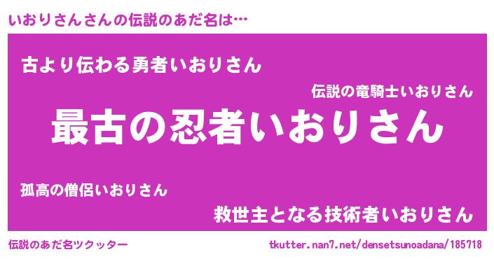 | 男性向けラノベタイトル風あだ名 | 『転生したらいおりさんだった件』 |