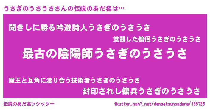 | 意味不明あだ名 | 『うさぎのうさうさフォーエバー』 |