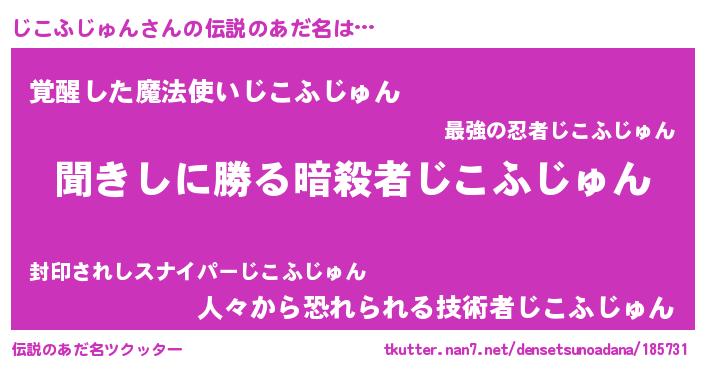 | 女子向けラノベタイトル風あだ名 | 『じこふじゅんなんてお断りですっ。』 |