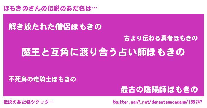 | 男性向けラノベタイトル風あだ名 | 『魔弾の王とほもきの』 |
