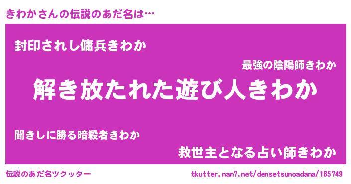 | ヒーロー風カッコイイあだ名 | 『幻影騎士キワ』『スーパーキワカ』 |