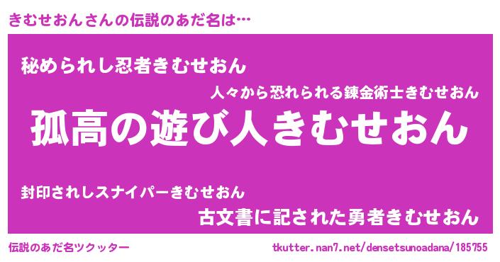 | 男性向けラノベタイトル風あだ名 | 『ダンジョンにきむせおんを求めるのは間違っているだろうか』 |