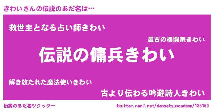 | 意味不明あだ名 | 『住所不定無職きわい(41歳)』『自称きわい』 |