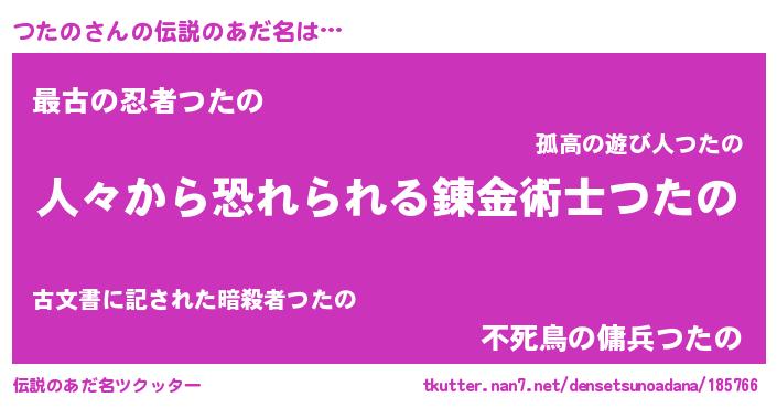 | ポケモン風あだ名 | 『ツックウザ』『ツタノダネ』 |