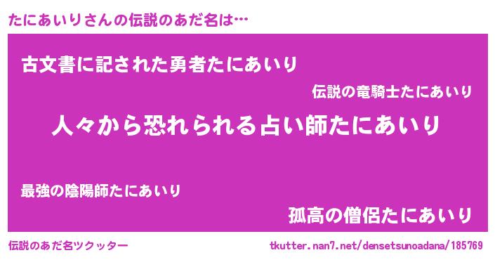 | ファンタジー風あだ名 | 『クインタット』『タニディッシュ』 |