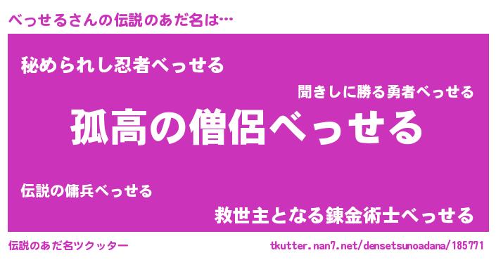 | ヒーロー風カッコイイあだ名 | 『黄金騎士ベッ』『ウルトラべっせるマン』 |