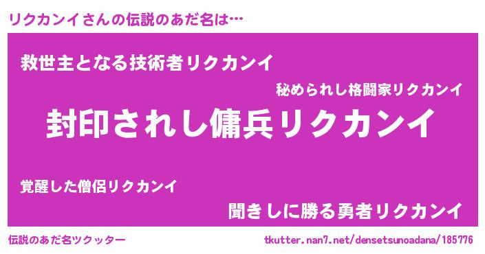 | 男性向けラノベタイトル風あだ名 | 『この素晴らしい世界にリクカンイを!』 |