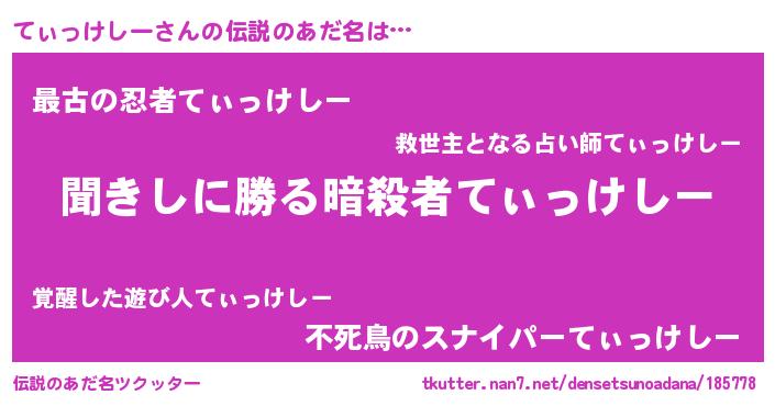 | 意味不明あだ名 | 『永久保存てぃっけしー』 |