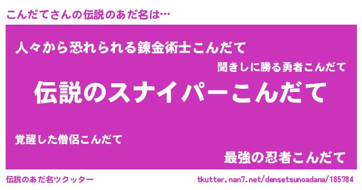| 意味不明あだ名 | 『自称こんだて』『ペロリンこんだて』 |