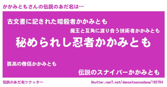 | ヒーロー風カッコイイあだ名 | 『ウルトラかかみともマン』 |