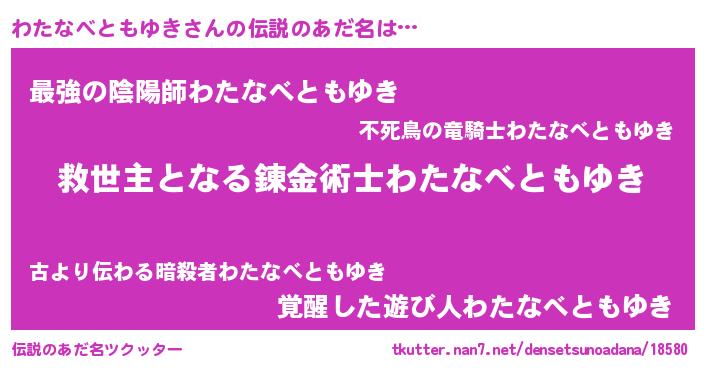 | ヒーロー風カッコイイあだ名 | 『慈愛の使者わたなべともゆき』 |