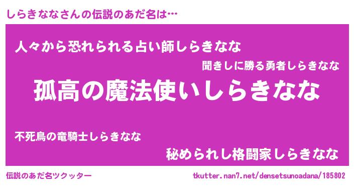 | ヒーロー風カッコイイあだ名 | 『暗黒騎士シラ』『友情の使者しらきなな』 |