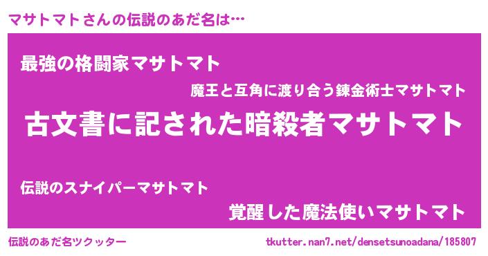 | 意味不明あだ名 | 『永久保存マサトマト』『自称マサトマト』 |
