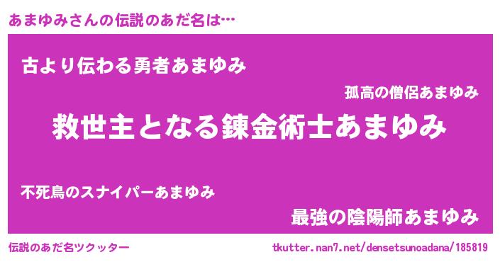 | ヒーロー風カッコイイあだ名 | 『慈愛の使者あまゆみ』『ネオアマユミ』 |