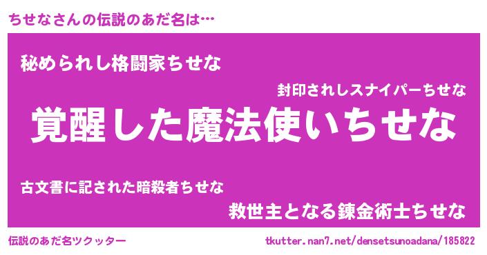 | 意味不明あだ名 | 『とにかく怪しいちせな』『自称ちせな』 |