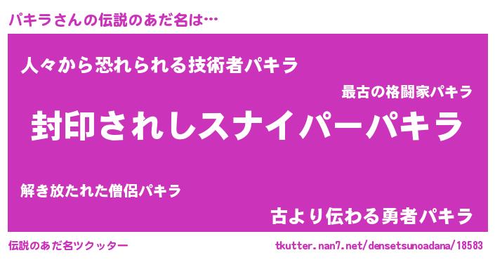 | ヘコむあだ名 | 『パキもー』『パキラ(小並感)』 |