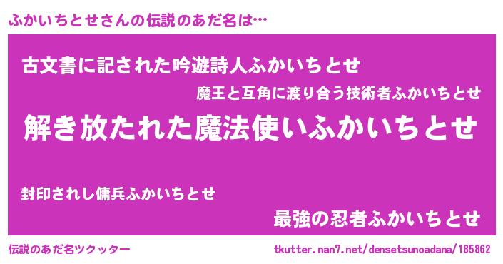 | 意味不明あだ名 | 『住所不定無職ふかいちとせ(3歳)』 |