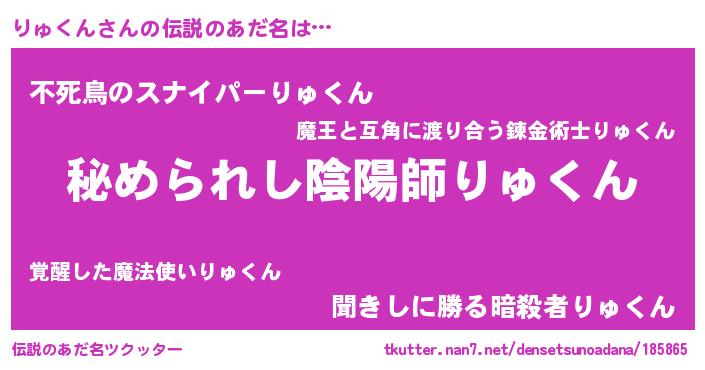 | 男性向けラノベタイトル風あだ名 | 『やはりりゅくんの青春ラブコメはまちがっている 』 |