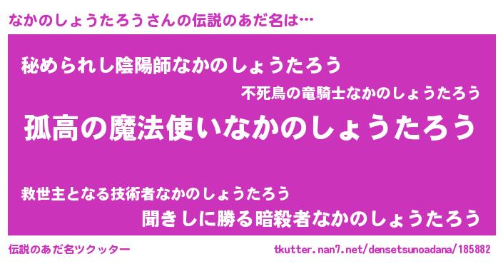 | 男性向けラノベタイトル風あだ名 | 『ナカノショウタロウスレイヤー』 |