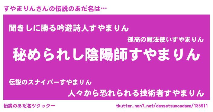 | 男性向けラノベタイトル風あだ名 | 『スヤマリンスレイヤー』 |