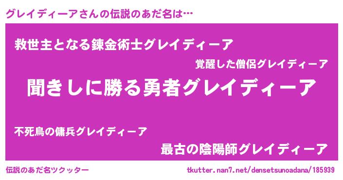 | 男性向けラノベタイトル風あだ名 | 『グレイディーアという概念が存在しない退屈な世界 』 |