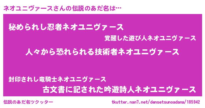 | 料理風あだ名 | 『ネオユニヴァースごはん』 |