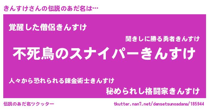 | ヒーロー風カッコイイあだ名 | 『スーパーキンスケ』『幻影騎士キン』 |
