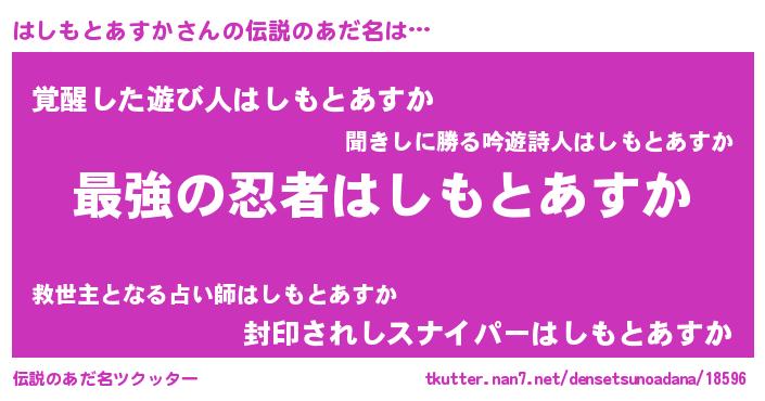 | 意味不明あだ名 | 『住所不定無職はしもとあすか(53歳)』 |
