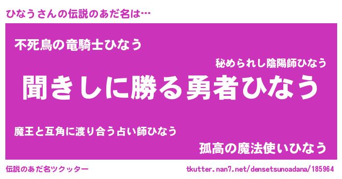 | 男性向けラノベタイトル風あだ名 | 『ひなうという概念が存在しない退屈な世界 』 |