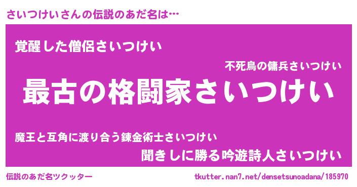 | 意味不明あだ名 | 『住所不定無職さいつけい(7歳)』 |