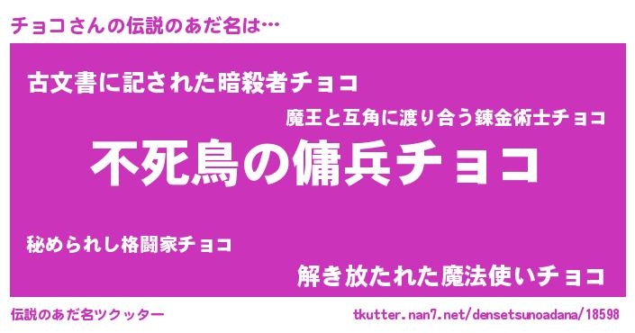 | ヒーロー風カッコイイあだ名 | 『スーパーチョコ』『ネオチョコ』 |