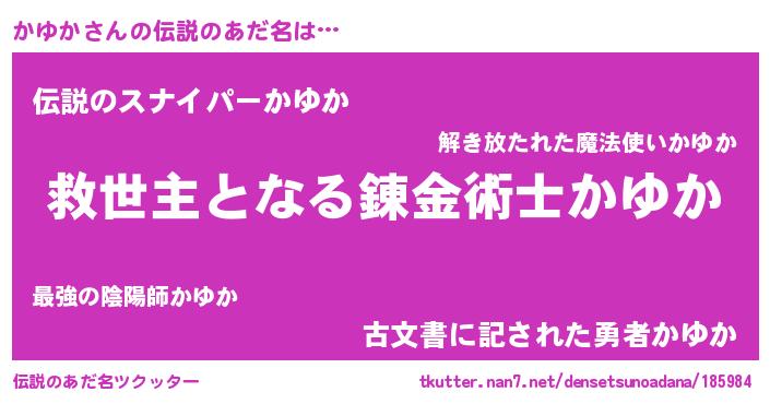 | ヘコむあだ名 | 『かゆっふぃ~』『かゆか(遠い目)』 |
