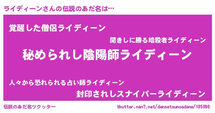 | 恥ずかしいあだ名 | 『ライディーンデラックス』『ライっちょ』 |