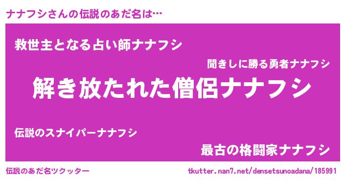 | ファンタジー風あだ名 | 『ファントムナナス』『カークナナラー』 |