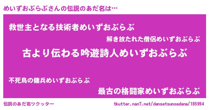 | 意味不明あだ名 | 『永久保存めいずおぶらぶ』 |