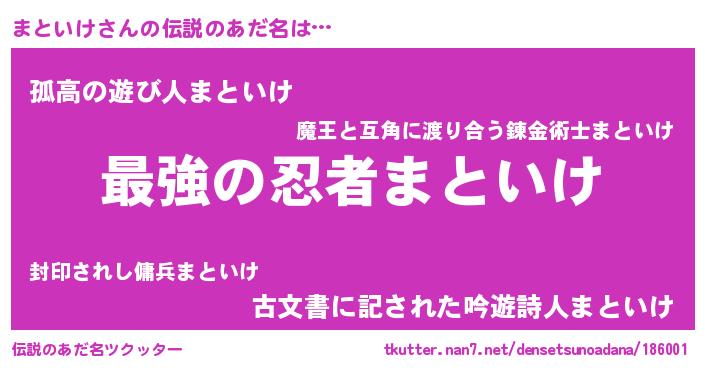 | 意味不明あだ名 | 『まといけフォーエバー』 |