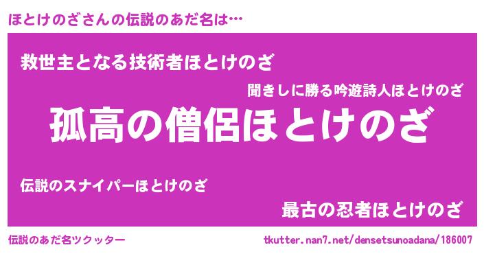 | ヒーロー風カッコイイあだ名 | 『黄金騎士ホト』『愛の使者ほとけのざ』 |