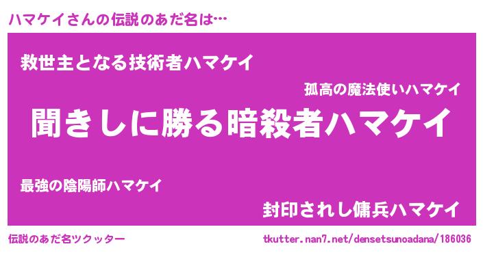 | ヒーロー風カッコイイあだ名 | 『ネオハマケイ』『天空の使者ハマケイ』 |