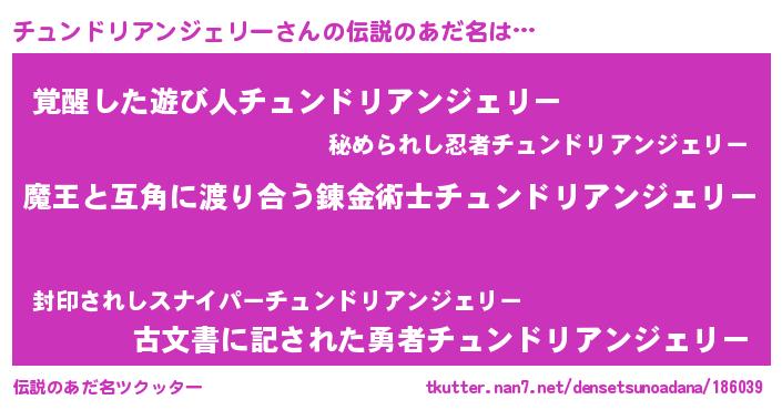| 男性向けラノベタイトル風あだ名 | 『ノーゲーム・ノーチュンドリアンジェリー』 |