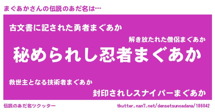 | ヒーロー風カッコイイあだ名 | 『ウルトラまぐあかマン』『ネオマグアカ』 |
