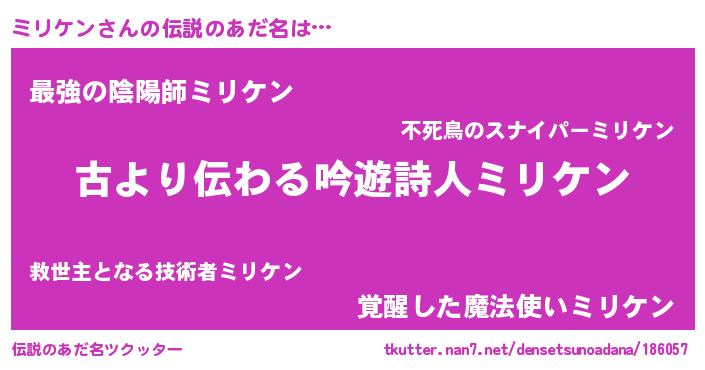 | ヘコむあだ名 | 『ミリケン(小並感)』『レバニラ』 |
