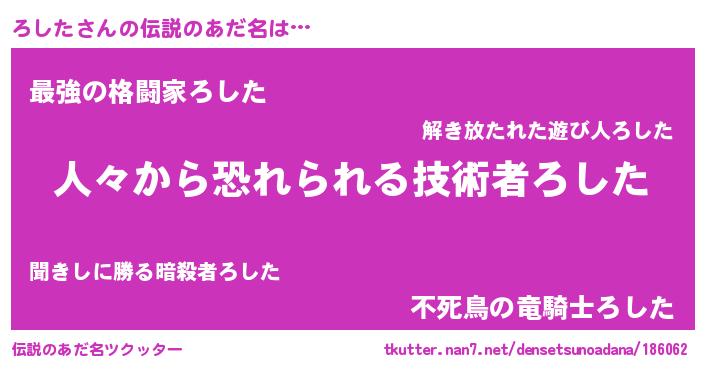 | 意味不明あだ名 | 『住所不定無職ろした(7歳)』 |
