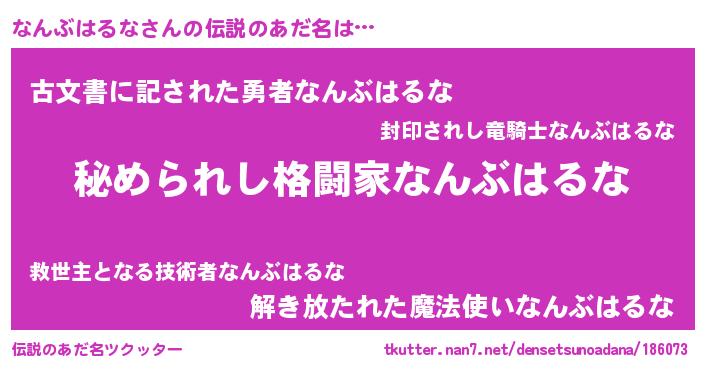 | ヒーロー風カッコイイあだ名 | 『ウルトラなんぶはるなマン』 |