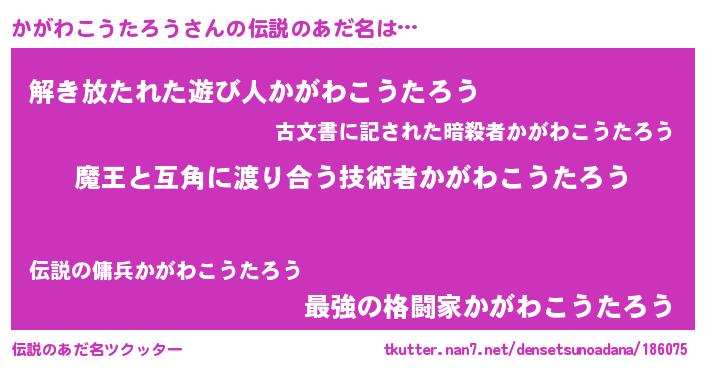 | ヒーロー風カッコイイあだ名 | 『サイバー戦士カガワコウタロウ』 |