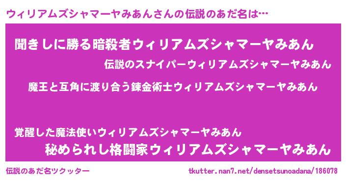 | 欧米人風あだ名 | 『ダニエルウィリアムズシャマーヤみあん』 |